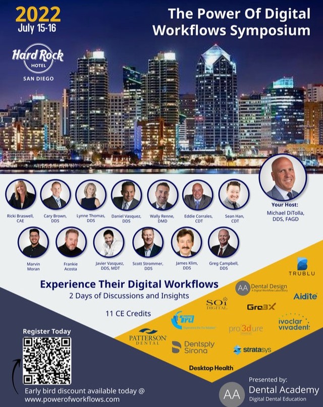 En SOi Digital estamos conscientes del camino digital que está tomando la odontología y el manejo de flujos de trabajo actual de los odontólogos, por tal motivo el próximo 15 y 16 de julio seremos parte de “The Power of Digital Workflows Symposium” en San Diego, Estados Unidos. Encuentro que ofrecerá una excelente oportunidad para conocer las nuevas miradas de un flujo eficiente acorde a la evolución de la tecnología. Con un connotado grupo de speakers y el respaldo de AA Dental Design, centro educativo y laboratorio digital.